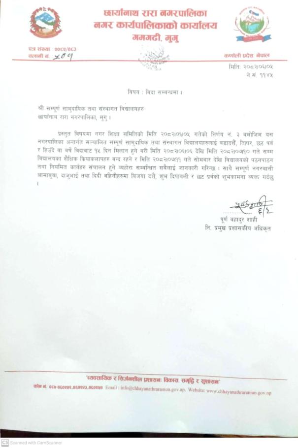 शैक्षिक सत्र २०८२ को लागी विद्यार्थी भर्ना तथा नियमित कार्य संचालन सम्बन्धमा ।
